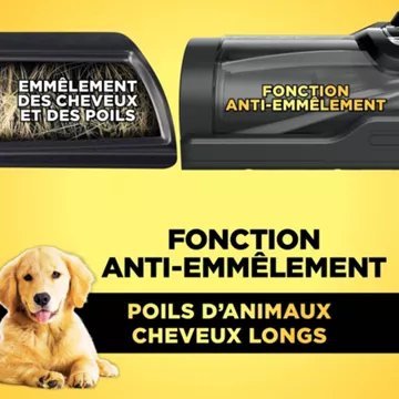La fonction anti-emmêlement de l’aspirateur-balai SHARK Detect Pro IW permet d’éliminer au fil du nettoyage les cheveux et poils d’animaux emmêlés dans la brosse pour ne plus avoir à la nettoyer.