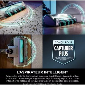 L’aspirateur balai SHARK Power Detect IP3251EUT révolutionne le ménage avec ses technologies de pointe. Équipé de 4 capteurs intelligents, il offre une expérience de nettoyage sans précédent. Le capteur DIRT DETECT augmente automatiquement la puissance d’aspiration face aux saletés invisibles, tandis que EDGE DETECT double l’efficacité dans les angles et les bords difficiles. Le capteur FLOOR DETECT ajuste la vitesse de la brosse rotative en fonction du type de sol, garantissant ainsi un nettoyage efficace sur tapis et moquettes. La brosse DUOCLEAN DETECT, avec sa fonction anti-emmêlement, assure une aspiration maximale des débris et des cheveux en un seul passage, avant et arrière.