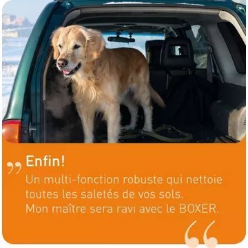 Utile pour vos travaux ménagers, comme vos petits bricolages, le BOXER ne se contente pas uniquement d’aspirer vos poussières, poils d’animaux, … et autres saletés quotidiennes, il peut aussi aspirer des liquides et laver !