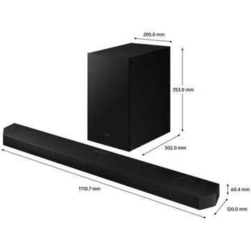 D’aspect, la barre de son Samsung HW-Q700B a tout pour vous séduire. Son design raffiné, sa belle couleur noire et sa finition en métal prouvent qu’elle n’a rien à envier à vos plus beaux objets de décoration. Arborant une silhouette épurée, grâce notamment à ses enceintes arrière discrètes, cette barre de son se fait remarquer par sa discrétion. Cette barre de son HW-Q700B va au-delà de l’esthétisme puisque sa hauteur a été réduite de sorte qu’elle s’intègre parfaitement sous l’écran de votre TV QLED sans qu’elle ne gêne pour autant le visionnage de votre film ou de votre série.