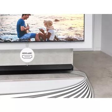 • Le + : Barre de son 3.1.2Ch – Dolby Atmos sans fil / DTS:X / Q-Symphony 2.0- Space Fit Sound 2.0 – Wifi