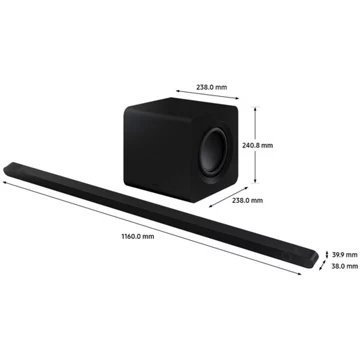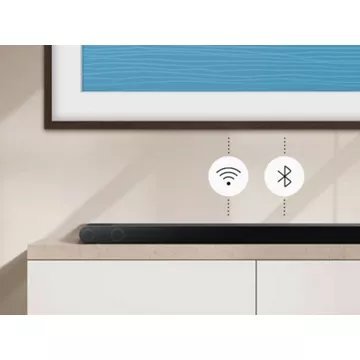 Ce qui frappe chez la barre de son Samsung HW-S800B, c’est sa finesse. Très longue (116 cm), elle affiche une hauteur très faible : seulement 3,8 cm ! Des dimensions parfaites qui lui garantissent une intégration subtile dans votre salon. Installez-la avec l’accroche murale incluse et profitez d’un appareil aussi performant que discret. Et tu tapes, tapes, tapes. Avec la fonction Tap Sound (5), vous connectez votre smartphone à votre barre de son Samsung d’une simple pression. Votre musique en Dolby Atmos vous attend ! Aussi simple pour connecter votre smartphone que pour votre téléviseur. Grâce au Wifi et au Bluetooth, votre TV Samsung s’appaire à votre barre de son en quelques secondes. Et pour en prendre le contrôle, servez-vous de la télécommande unique ou utilisez les assistants intégrés (Chromecast et AirpPlay2 (6)).