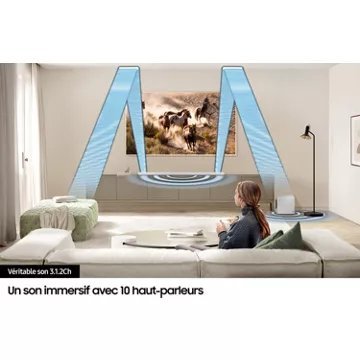 La barre de son Samsung HW-S811D/XE révolutionne l’expérience audio avec son système acoustique 3.1.2Ch. Conçue pour se fondre dans votre intérieur grâce à son profil incroyablement fin de moins de 4 cm de hauteur, elle n’en demeure pas moins puissante. Dotée de 10 haut-parleurs, dont un haut-parleur central et des haut-parleurs verticaux, elle garantit une clarté vocale exceptionnelle et un son vertical enveloppant. Le caisson de basse sans fil enrichit chaque scène de basses profondes et dynamiques, tandis que les technologies Dolby Atmos et DTS Virtual:X vous placent au coeur de l’action avec un son surround 3D. Avec SpaceFit Sound, la barre de son s’adapte à l’acoustique de votre espace, offrant ainsi une calibration sonore personnalisée pour une immersion totale.