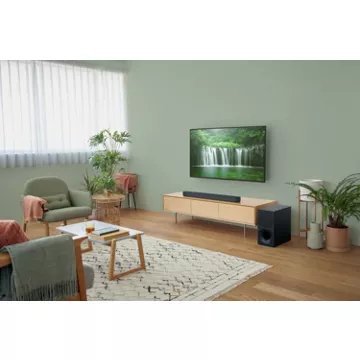 La HT-S400 vous offre un son riche, précis et puissant. Grâce au Dolby Digital de haute qualité et à sa technologie S-Force PRO Front Surround, profitez d’un son enveloppant et cinématographique. Plongez-vous dans vos films et jeux vidéo préférés grâce à un caisson de basse sans fil équipé d’un diaphragme de 160 mm et d’une puissance de 330W, offrant des graves profonds et intenses. Connectez également votre smartphone, tablette ou ordinateur en Bluetooth pour écouter vos musiques favorites, pour une expérience sonore immersive.
