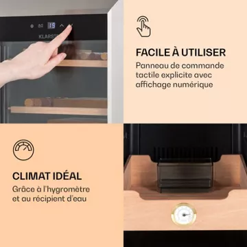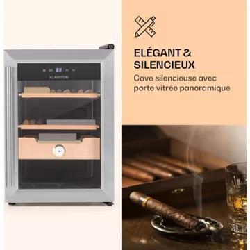 - Élégant et silencieux : cave à cigares silencieuse avec porte vitrée panoramique