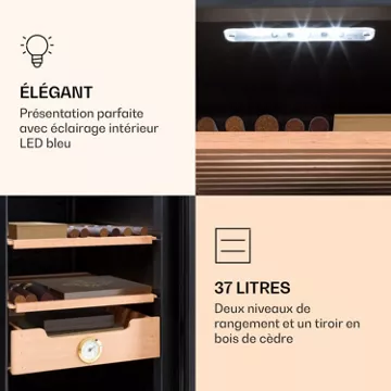 Klarstein El Presidente 37 Cave à cigares 37 l 2 clayettes 1 compartiment bois de cèdre