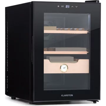 Le lieu de stockage à la pointe de la technologie pour le plaisir du tabac noble : la cave à cigares Klarstein El Presidente 37 assure des conditions de stockage optimales pour préserver à long terme le plein arôme des cigares nobles. Dans l’espace intérieur de 37 litres, deux niveaux de stockage et un compartiment de stockage en bois de cèdre offrent beaucoup de place pour tes cigares : silencieux, parfaitement refroidis et avec une surveillance optimale de l’humidité de l’air. L’éclairage intérieur bleu crée une scène stylée derrière la porte vitrée panoramique.