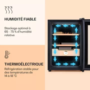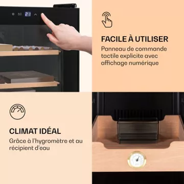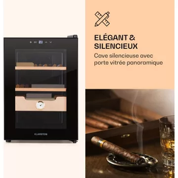 - Élégant et silencieux : cave à cigares silencieuse avec porte vitrée panoramique