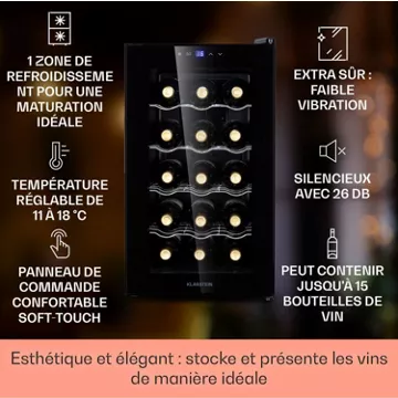 Pratique, élégante et esthétique partout : la cave à vin Barolo 15 Uno de Klarstein.