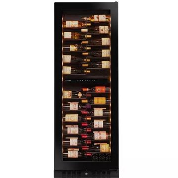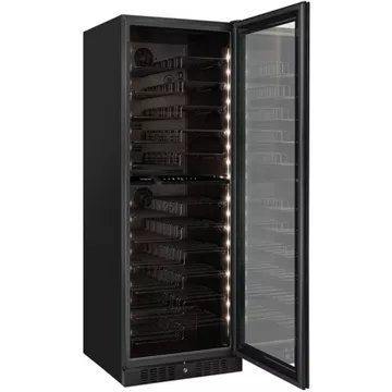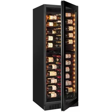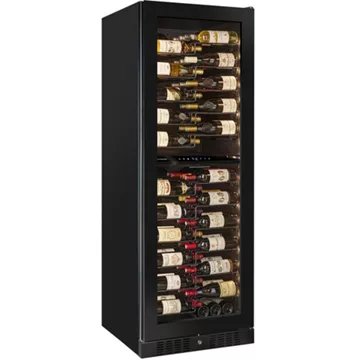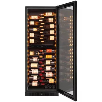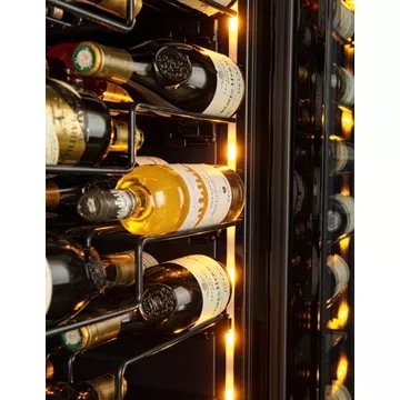 - Type de porte : vitrée, permet de visualiser facilement les bouteilles sans avoir à ouvrir la porte, ce qui réduit la circulation de l’air dans la cave et donc la variation de la température. Le traitement anti-uv protège le contenu.