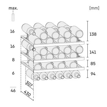- Conseil de rangement : rangez du haut vers le bas vins rouges forts, vins rosés ou rouges moyens, vins blancs