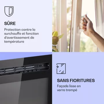 Décoration murale fonctionnelle d’un genre différent : avec la cheminée électrique Klarstein Galeras, enrichissez votre intérieur d’une cheminée murale à la fois magnifique et produisant de la chaleur. En appuyant sur un bouton de la télécommande pratique, faites briller le jeu de flammes de la Galeras en différentes couleurs et intensités. Le thermostat intégré réglable entre 16 et 30 °C garantit une température de bien-être adéquate. Grâce au programmateur hebdomadaire, définissez vos propres horaires de chauffage et laissez-vous accueillir par une chaleur agréable et des couleurs inspirantes. Grâce à son design sobre, le foyer mural et encastrable Galeras s’intègre idéalement dans tout type d’intérieur.