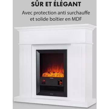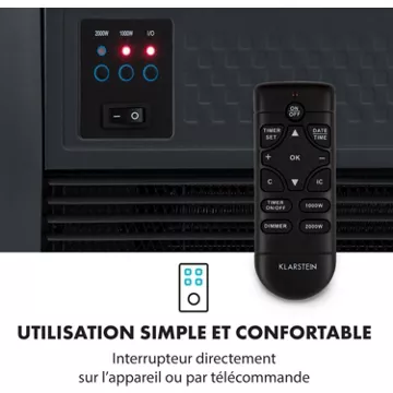 Une ambiance romantique au coin du feu tous les soirs, en toutes saisons ! La cheminée électrique Klarstein Kamini FXL fonctionne sans feu ouvert, sur simple pression d’un bouton. Elle peut non seulement être utilisée dans les cheminées froides existantes, mais aussi être placée librement dans chaque pièce. La douce lumière dans les charbons provient d’une LED économique de 2 W et imite à s’y méprendre, par ses mouvements, des bûches incandescantes. La fonction chauffage activable fonctionne au choix avec 1 000 ou 2 000 watts. De plus, le cheminée possède une fonction ventilation. Même en été, il est désormais possible de profiter d’un joli feu de cheminée : ol suffit d’allumer exclusivement l’éclairage.
