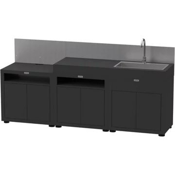 Transformez votre espace extérieur en un véritable atelier gastronomique en y intégrant les 3 éléments de cuisine avec crédences LE MARQUIER.