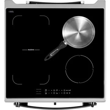 de cuisson et beaucoup d’options. Elle dispose de la fonction flexible DuoZone qui veut dire que les foyers sont divisés en 2 zones de cuisson autonomes : cuisinez soit à l’avant, soit à l’arrière ou bien sur les deux zones simultanément. Ce modèle va encore plus loin car vous pouvez ajuster les niveaux de puissance des foyers pour s’adapter à chaque type de préparation.