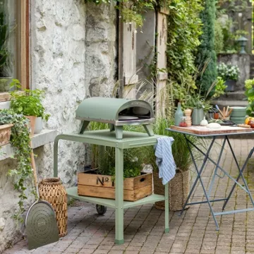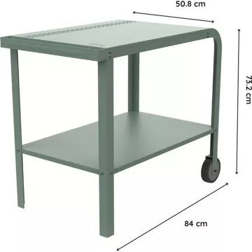 Utilisez cette desserte en acier thermolaqué pour poser votre four à pizza Piana ou Piana Gaz. Mobile et robuste elle est idéale pour installer un vrai coin pizza dans votre jardin. Grâce à la poignée et les deux roues à l’arrière vous pourrez la déplacer facilement. Utilisez le plateau supérieur pour poser votre four à pizza. Ingrédients, ustensiles et accessoires trouveront leur place sur le plateau inférieur.