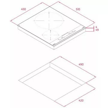 • LxHxP (encastrement) : 42 x 4.9 x 49 cm