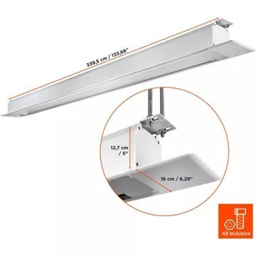 Dimensions de la découpe de plafond : 349 x 13,5 cm (Longueur x Largeur)