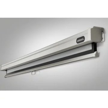 Ecran de projection Celexon Manuel PRO 220 x 165 cm Les produits de la série Manuel PRO de Celexon sont des écrans de qualité et robustes, parfaits pour tout type de système de projection. Caractéristiques : – Surface utile: 214 x 161 cm (correspond à une diagonale de 103 pouces ou 262 cm) – Bords noirs: 3 x 3 x 3 cm (bas/gauche/droite) – Drop noir: 5 cm – Dimensions totales du carter : 235 x 7 x 7 cm (L x H x P) – Poids : 12 kg – Carter carré, laqué blanc à sec – Fixation au mur ou plafond – Dos noir opaque – Idéal pour le Home Cinema et les présentations avec un facteur de gain de 1,2 – Hauteur d’ arrêt réglable pour obtenir d’ autres formats L’écran Manuel PRO se prête à merveille aux salles de conférence haut de gamme. Il donne également des résultats spectaculaires dans un environnement Home Cinema. Sa toile épaisse et lourde lui confère un excellent tendu. L’écran de projection Celexon Manuel PRO est réglable en hauteur grâce à sa mécanique de précision. Ainsi, en plus d’ un format 4:3, vous pouvez obtenir un format 16:9, voire 21:9. L’ écran de projection Celexon Manuel PRO reflète votre image avec un facteur gain de 1,2. Il est optimisé pour les vidéoprojecteurs LCD comme les DLP et permet un angle de vision très large. Le dos noir opaque retient la lumière de votre projection pour que votre image soit des plus lumineuses possibles. De même, ce dos noir vous permet de placer l’ écran devant une fenêtre sans aucun problème! Les bords noirs, en s’adaptant parfaitement au format de votre image, offrent un très bon contraste pour un meilleur confort visuel pendant la projection. Le pack comprend: le matériel de montage, la notice d’ installation et un cordon. Remarque : Les valeurs indiquées sont des moyennes. De légères différences sont possibles, dues à la production en série.