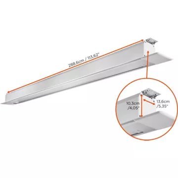 L’écran motorisé tensionné DELUXX Cinéma – DARKVISION est livré avec une large gamme d’accessoires et peut être contrôlé de plusieurs façons : le système radio-fréquence sans fil et IR sont inclus, ou vous pouvez également le connecter sans fil à votre télécommande Logitech (les codes sont indiqués par Logitech) sans aucun problème. De plus, vous trouverez sur le carter une entrée trigger 5V-20V (l’écran descend et remonte automatiquement au démarrage ainsi qu’à l’arrêt du vidéoprojecteur) ainsi qu’une intégration professionnelle via RS232/RS485 dans des systèmes tels que Crestron ou RTI, ou encore différentes méthodes de transmissions entre deux appareils telle que la domotisassion. Vous avez le choix !