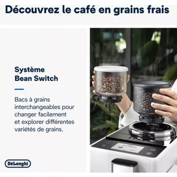 Grâce au nouveau système Bean Switch, explorez aisément le vaste univers des cafés en grains. Il vous suffit de placer votre café en grains préféré dans l’un des deux bacs à grains, et de changer de bac quand bon vous semble ! Profitez d’une expérience café inédite et gourmande à chaque dégustation.