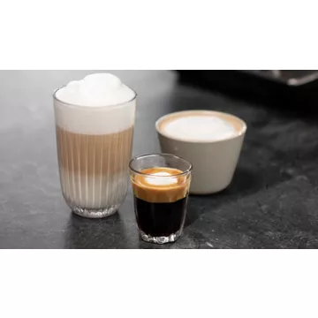 - Type de recettes : Espresso, Café, Café long, Café Cortado, Café crème, Cappuccino, Latte Macchiato, Caffelatte, Mousse de lait, Lait chaud, Espresso Macchiato