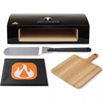 Ce four à pizza noir en acier inoxydable émaillé et noir de la marque BakerStone présente un design unique qui élève la température de votre barbecue extérieur à l’équivalent d’un vrai four à pizza au bois.