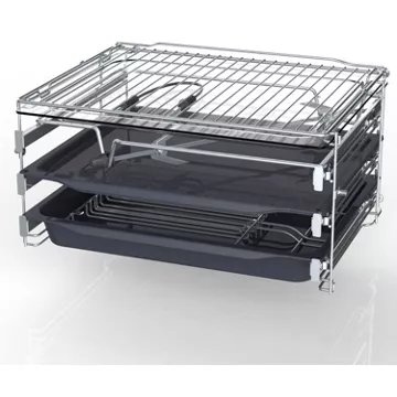 • Rails téléscopiques : ils permettent d’accéder à vos plats en les faisant coulisser en dehors de l’enceinte de cuisson en évitant les risques de basculement. Vous pourrez arroser confortablement votre rôti ou retourner facilement vos plats sans risque de brûlure.