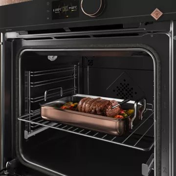 L’écran TFT couleur enrichit l’interaction avec des photos réalistes des plats, facilitant le choix des nombreuses fonctions de cuisson disponibles. Avec sa porte abattante Soft Close et son intérieur en émail, ce four allie esthétique et facilité d’entretien.