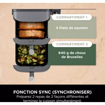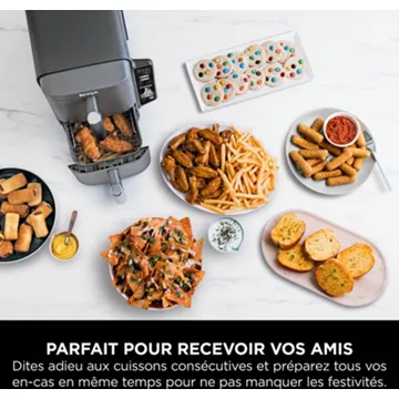 La Friteuse sans huile NINJA Double Stack XL 9,5 L SL400EU révolutionne la cuisine quotidienne avec sa capacité exceptionnelle de 9,5 litres, répartie en deux tiroirs de 4,75 litres chacun. Grâce à son système de grilles superposables, elle permet de cuire jusqu’à quatre couches d’aliments simultanément, offrant ainsi une solution idéale pour les familles nombreuses ou les repas entre amis. Sa conception verticale et compacte permet de regagner jusqu’à 30% d’espace sur le plan de travail, un atout considérable pour les cuisines aux dimensions restreintes. La technologie DualZone synchronise les fins de cuisson des deux tiroirs, assurant que tous les plats soient servis chauds et en même temps.