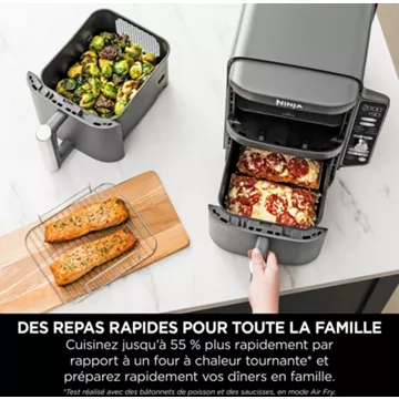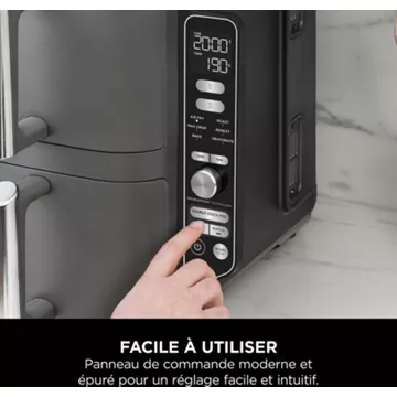 Dotée d’une puissance de 2470W, la Friteuse NINJA Double Stack XL promet une cuisson jusqu’à 75% plus rapide qu’un four à chaleur tournante, sans compromettre la qualité ni la texture des aliments. Avec ses six modes de cuisson programmables, elle s’adapte à une multitude de recettes, du croustillant Max Crisp à la déshydratation en passant par la cuisson au four. Elle est également capable de cuire des aliments congelés, garantissant une préparation efficace et sans attente. En outre, cette friteuse réduit la teneur en matières grasses de 75% par rapport à une friture traditionnelle, offrant une alternative plus saine sans sacrifier le goût. Les accessoires inclus, tels que les plaques et grilles de cuisson, sont conçus avec un revêtement antiadhérent et sont compatibles avec le lave-vaisselle, simplifiant le nettoyage après utilisation.
