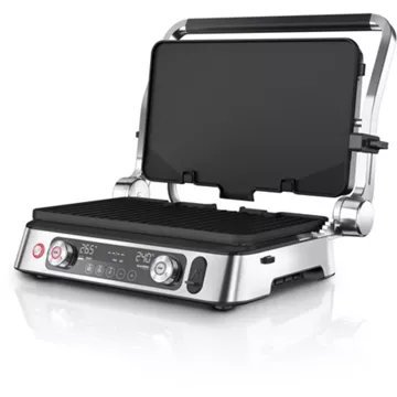 • Nombre de programmes : 3 programmes de cuisson préenregistrés : hamburgers, panini et maintien au chaud allant jusqu’à 265°