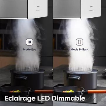Fonctionnement en double mode, vous pouvez contrôler la hotte à distance par téléphone portable ou simplement en touchant le panneau. Veuillez télécharger l’application Smart Life pour utiliser le WIFI. Voir le manuel pour plus de détails.