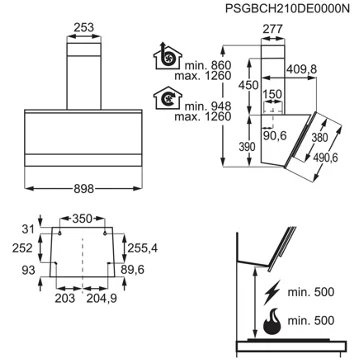 • Largeur : 90 cm, pour une zone de cuisson allant jusqu’à 90 cm de largueur.