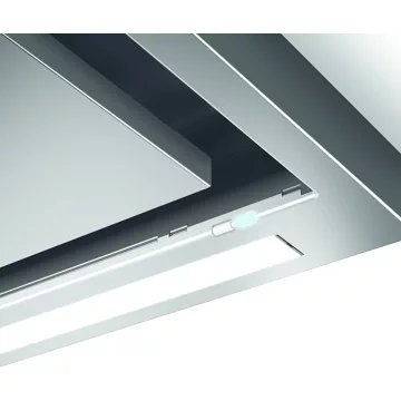 - Type de hotte : plafond, offre un design contemporain et dégagé, libérant l’espace mural. Elle assure une capture optimale des fumées et odeurs de cuisson, tout en créant une ambiance moderne et sophistiquée dans la cuisine, idéale pour un style de vie moderne et élégant.