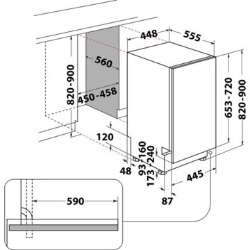 • Avantage tout intégrable : Le bandeau de commande est entièrement dissimulé dans la tranche de la porte. Ainsi, le lave-vaisselle tout intégrable est le plus discret de tous les appareils