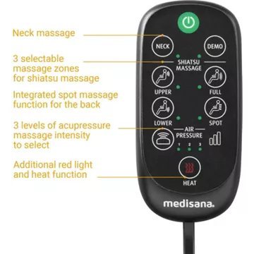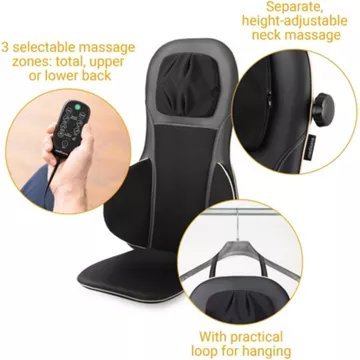 Avec votre repose-siège de massage par acupression MC 825 de medisana, vous disposez d’un appareil moderne pour un véritable massage shiatsu dans toute la zone du dos. Le massage de la nuque, qui peut être activé séparément, est réglable individuellement en hauteur et s’adapte ainsi à la taille de plusieurs utilisateurs. Pour que votre appareil reste propre et hygiénique, la housse au niveau de la nuque peut être retirée et lavée.