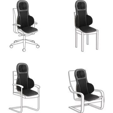 Deux têtes de massage au niveau de la nuque et des épaules et deux doubles têtes de massage rotatives au niveau du dos assurent un massage shiatsu intensif. Il est possible de choisir entre les zones de massage « haut du dos », « bas du dos » et « ensemble du dos ». Pour une expérience de détente inédite, le coussin d’assise est en outre équipé de coussins d’air. Il est en outre équipé d’une fonction de chaleur activable dans les têtes de massage du dos et d’un arrêt automatique au bout de 15 minutes.