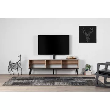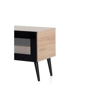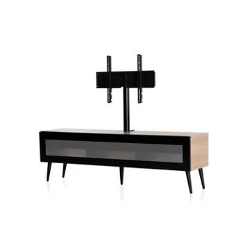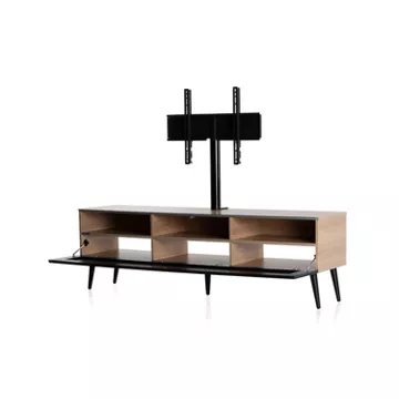 Meuble TV avec porte en verre opaque infrarougeCORDOUE 160 offre des solutions de gestion des câbles et d’aération pour vos équipements audio-vidéoCaisson en bois mélaminé de couleur bois clair.2 configurations intérieures disponibles (le choix se fait lors du montage du meuble) : version standard avec 6 compartiments et version spéciale barre de son avec 4 à 5 compartimentsPorte abattante en verre opaque infrarouge de couleur noire pour télécommander vos périphériques sans ouvrir la porte. Ouverture par pression avec aimant poussoir.Pieds scandinaves de couleur noire.Fixation TV rotative à 24° avec colonne cache câble noire en aluminium. Poids max TV 35 kg (la fixation s’assemble sur la partie supérieur du meuble). Vesa 200 300 400 600Meubles livrés non montés avec notice et visserie.Garantie 2 ans