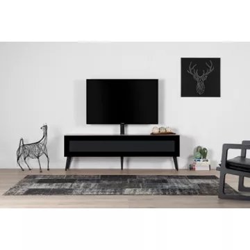 • Avantages : « – Meuble TV avec porte abattante en verre infrarouge laissant passer les signaux de vos télécommandes.- Colonne TV rotative (à +/-24°) et cache-câble.- Ouvertures à l’arrière pour une dissipation optimale de la chaleur des appareils audio-vidéo. »