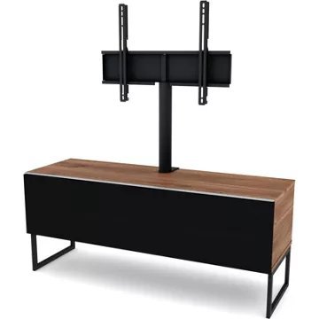 Le Meuble TV MELICONI SUKARAJA 120, avec son style industriel affirmé, associe la robustesse du bois mélaminé couleur bois foncé Hut et la modernité du métal. Sa porte en textile acoustique noire, non seulement élégante, permet le passage du son et des signaux infrarouges, vous offrant ainsi la possibilité de contrôler vos appareils sans ouvrir le meuble. La colonne TV rotative noire, ajustable en hauteur et compatible avec des écrans de 32 à 45 pouces, assure un angle de vue optimal grâce à sa rotation de +/-24°. Les pieds design noirs surélevant le meuble à 20 cm du sol, ajoutent une touche d’élégance tout en facilitant le nettoyage des sols.