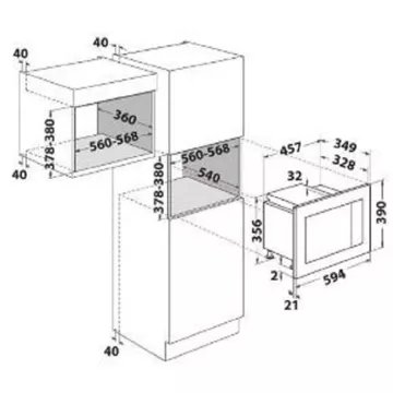 - Hauteur niche d’encastrement : Micro ondes hauteur 38 cm
