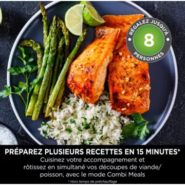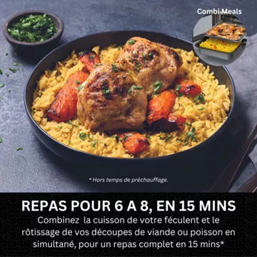 Le Multicuiseur NINJA Combi Cooker SFP700EU se présente comme l’allié incontournable des cuisiniers modernes. Avec sa capacité à combiner les fonctions de multicuiseur, de four et de friteuse à air, cet appareil est un véritable couteau suisse culinaire. Grâce à ses deux éléments chauffants, situés en haut et en bas, ainsi qu’à son puissant ventilateur de convection, il assure une cuisson et un croustillant parfaits des aliments. L’accès est facilité par une large porte, permettant de manipuler les plats aisément à tout moment. Que ce soit pour préparer un repas rapide pour huit personnes avec la fonction Combi Meals de 15 minutes ou pour concocter des plats en quantité, idéaux pour une famille de quatre personnes, le NINJA Combi Cooker est l’outil de choix pour des repas savoureux et sans tracas.