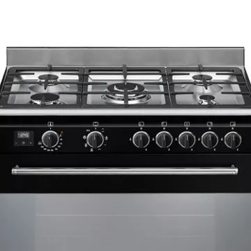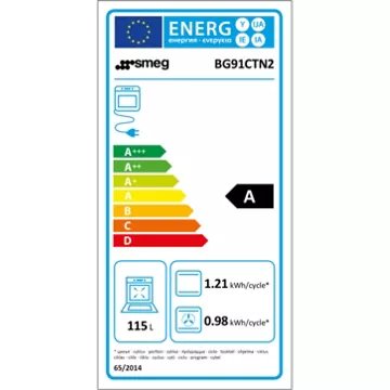 Le four principal du SMEG BG91CTN2, avec sa cavité de 115 litres et son système de chaleur tournante, assure une cuisson homogène pour des résultats toujours parfaits. Avec 8 fonctions de cuisson, dont la chaleur brassée et le gril fort ventilé, ce piano de cuisson répond à tous les besoins culinaires. La classe d’efficacité énergétique A confirme l’engagement de SMEG en matière de respect de l’environnement, sans compromis sur la performance. La présence d’un allumage intégré aux manettes, d’un thermocouple de sécurité et d’un éclairage halogène complète l’expérience utilisateur en alliant confort d’utilisation et sécurité.