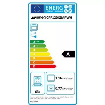 - Valeurs du label énergie : Label énergie A, Consommation en convection naturelle 0,77 kW, Consommation en chaleur tournante 0,68 kW