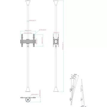 Le support sol-plafond KIMEX 032-2002K1 est conçu pour accueillir deux écrans de télévision 32″-75″ répondant aux standards VESA (100x100mm min, 400x400mm max), jusqu’à 30 kg. Ingénieux, ce support est idéal lorsque vous n’avez pas la possibilité de positionner vos écrans au mur, il repose en effet sur deux colonnes à fixer au sol et au plafond d’une hauteur respective de 150 cm et coupables pour s’adapter à votre besoin (gabarit de perçage en option, ref 032-1014). Les deux fixations, robustes et fonctionnelles, vous permettent de positionner vos écrans en hauteur au niveau où vous le désirez, de les incliner (+6°/-15°), et de les orienter de gauche à droite à 360° pour vous procurer le meilleur angle de vision. Conçu dans une optique esthétique, il dispose enfin de passe-câbles qui vous garantissent un rendu parfait.