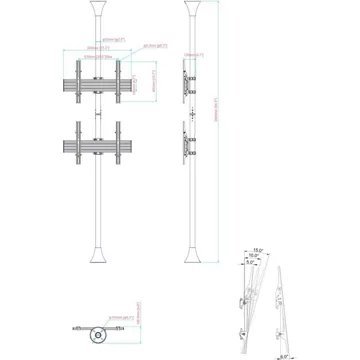 Le support sol-plafond KIMEX 032-2012K4 est conçu pour accueillir deux écrans de télévision 32″-75″ répondant aux standards VESA (100x100mm min, 600x400mm max), jusqu’à 30 kg. Ingénieux, ce support est idéal lorsque vous n’avez pas la possibilité de positionner vos écrans au mur, il repose en effet sur deux colonnes à fixer au sol et au plafond d’une hauteur respective de 150 et de 80 cm, et coupables pour s’adapter à votre besoin (gabarit de perçage en option, ref 032-1014). Les deux fixations, robustes et fonctionnelles, vous permettent de positionner vos écrans en hauteur au niveau où vous le désirez, de les incliner (+6°/-15°), et de les orienter de gauche à droite à 360° pour vous procurer le meilleur angle de vision. Conçu dans une optique esthétique, il dispose enfin de passe-câbles qui vous garantissent un rendu parfait.