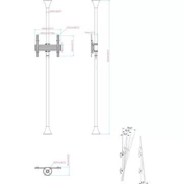 Le support sol-plafond KIMEX 032-2011K1 est conçu pour accueillir un écran de télévision 32″-75″ répondant aux standards VESA (100x100mm min, 400x400mm max), jusqu’à 30 kg. Ingénieux, ce support est idéal lorsque vous n’avez pas la possibilité de positionner votre écran au mur, il repose en effet sur deux colonnes à fixer au sol et au plafond d’une hauteur respective de 150 cm et 80 cm, et coupables pour s’adapter à votre besoin (gabarit de perçage en option, ref 032-1014). Sa fixation d’écran, robuste et fonctionnelle, vous permet de positionner votre écran en hauteur au niveau où vous le désirez, de l’incliner (+6°/-15°), et de l’orienter de gauche à droite à 360° pour vous procurer le meilleur angle de vision. Conçu dans une optique esthétique, il dispose enfin de passe-câbles qui vous garantissent un rendu parfait.