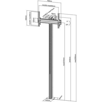 Support sur pied pour écran TV 32″ – 75″ à visser, Hauteur 240cm, Fonction inclinable.