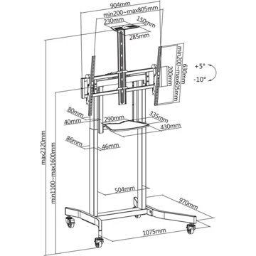 Le support sur pied motorisé KIMEX 018-6186 est conçu pour accueillir des écrans TV de 55 à 100″ répondant aux standards VESA (200×200 min, 800×600 max), jusqu’à 120 kg.